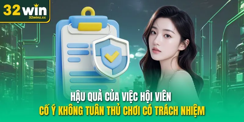 Nếu vi phạm nghiêm trọng, như sử dụng nhiều tài khoản để lạm dụng khuyến mãi hoặc gian lận, 32WIN có quyền khóa tài khoản vĩnh viễn. Hành vi này không chỉ làm mất số dư mà còn cấm tham gia nền tảng. Hướng dẫn chơi cá cược có trách nhiệm nhấn mạnh việc tuân thủ để tránh hậu quả, như không chia sẻ tài khoản hoặc dùng phần mềm hack.