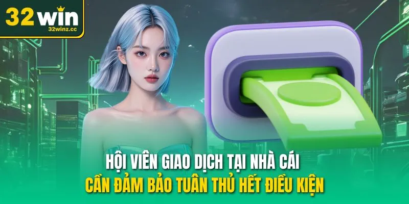 - Giao dịch rút tiền siêu tốc 24/7 đi kèm những quy định cụ thể về điều kiện rút tiền 32WIN, chẳng hạn như yêu cầu về số vòng cược hợp lệ mà bạn cần đạt được hoặc doanh thu cược tối thiểu. Bạn cần đáp ứng đầy đủ điều kiện này để đảm bảo yêu cầu được phê duyệt nhanh chóng, từ đó tránh vấn đề phát sinh không mong muốn.